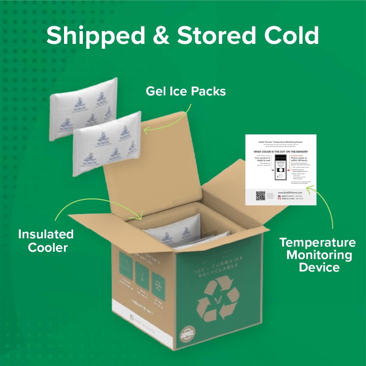 Visbiome is shipped in an insulated container with ice packs and should be stored under refrigerated conditions (36-46'F, 28'C) to ensure vitality, as exposure to heat could inactivate some of the live bacterial strains. Every order is accompanied bya temperature monitoring sensor specifically calibrated for Visbiome.